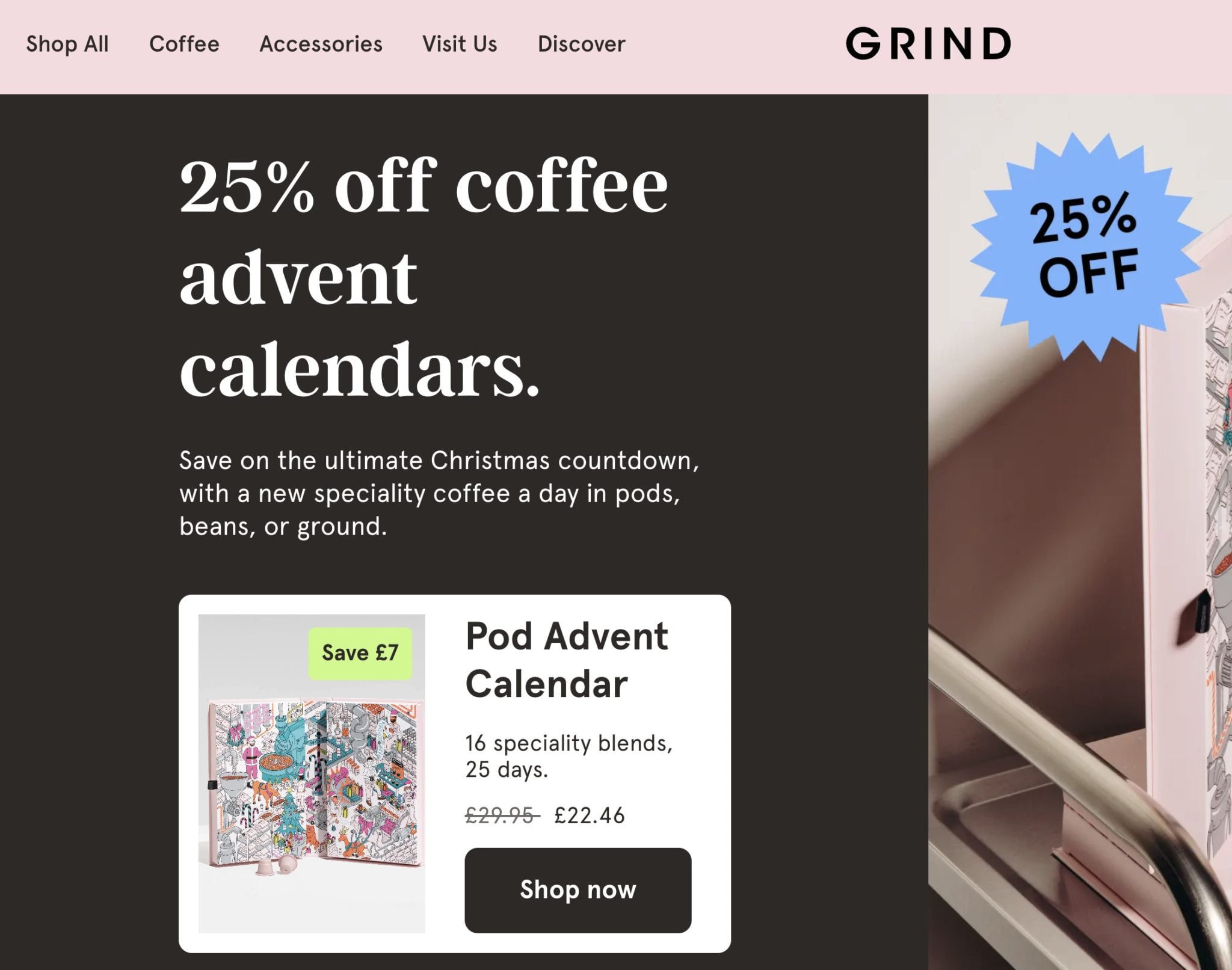Specialty coffee brand Grind are using anchoring to promote their coffee advent calendars.