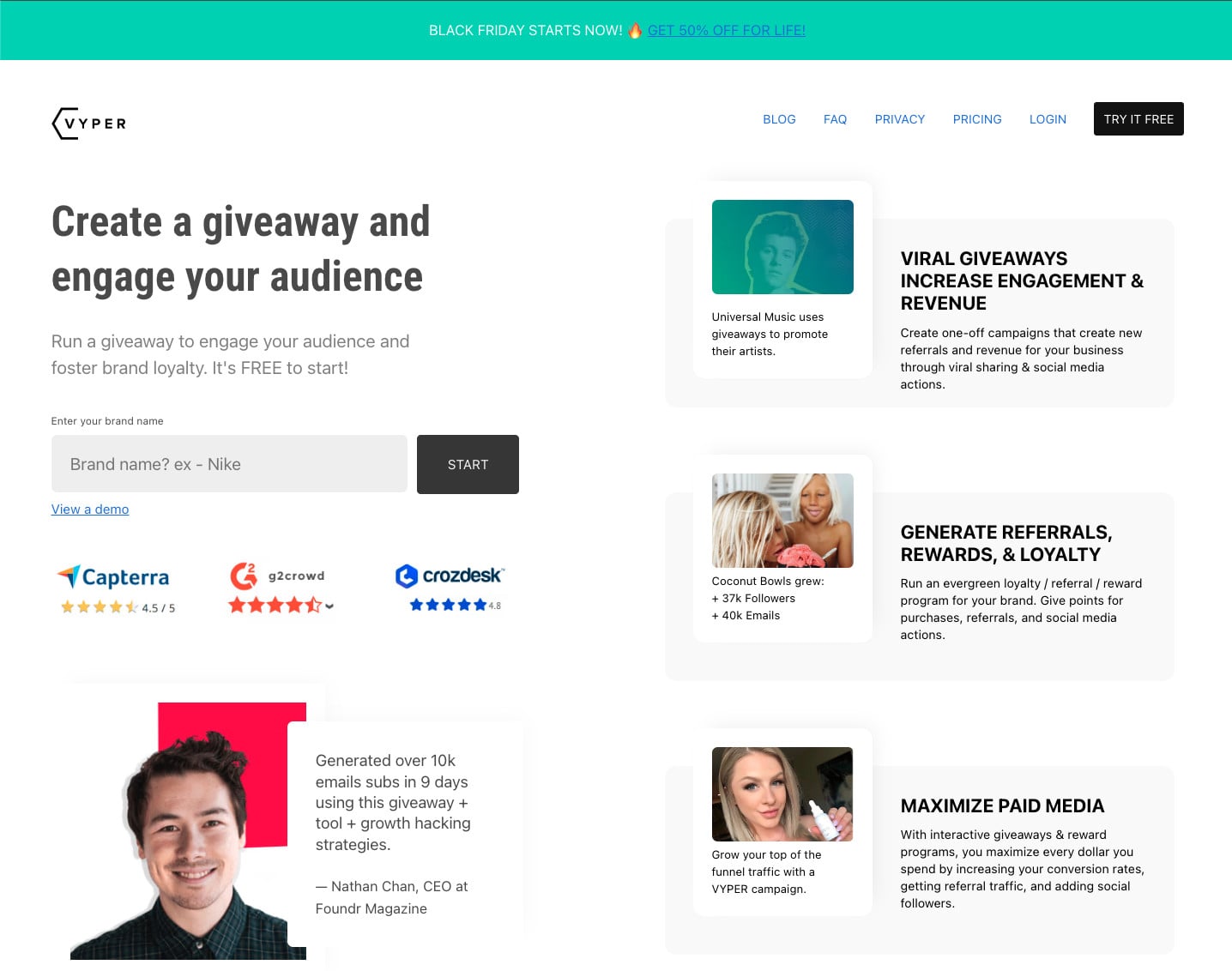 VYPER use social proof to great effect on this page, with multiple different technique at play,