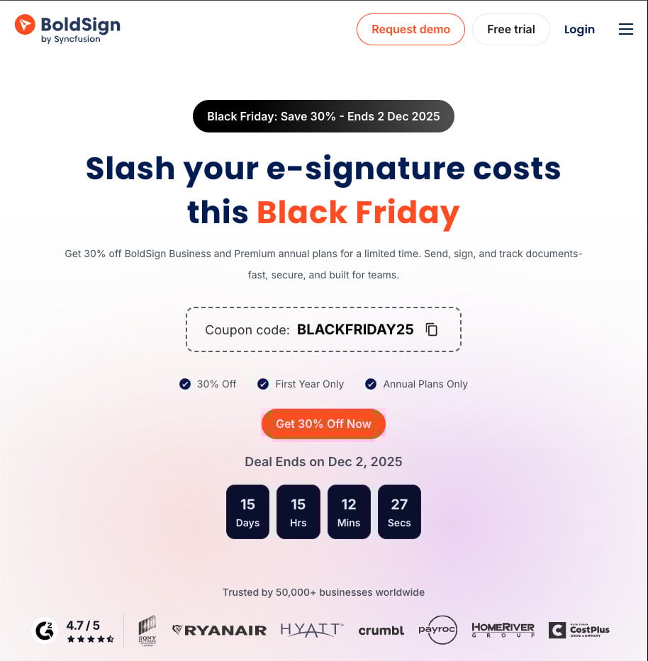 BoldSign’s countdown timer to when the deal ends is a tried-and-tested technique that pays off.