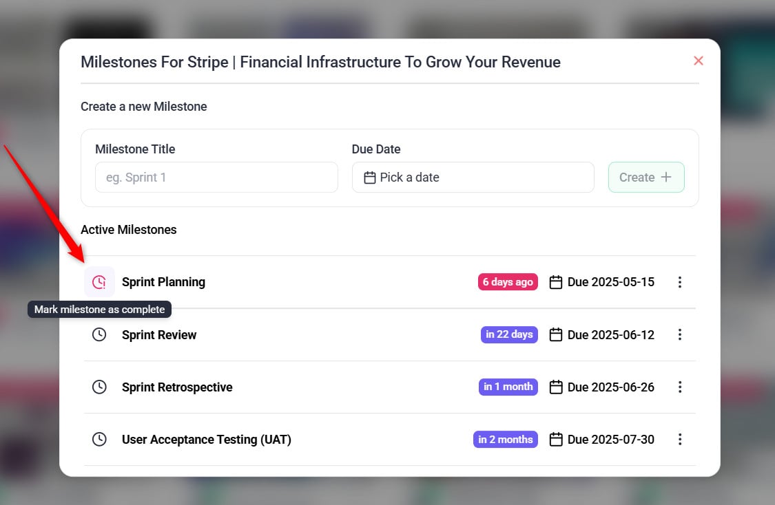 Tip: Use descriptive milestone names that indicate specific actions (e.g., “Client Feedback Round 1” instead of “Checkpoint 1”).