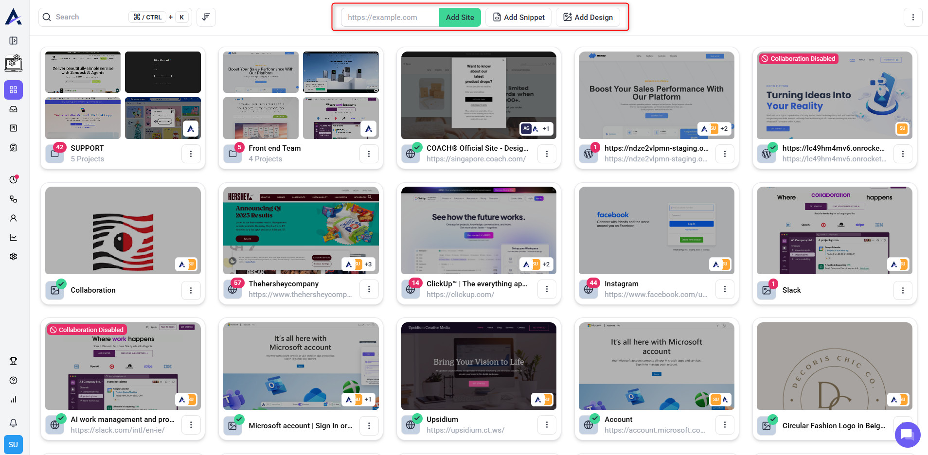 - Click “Add Site” to generate a shareable collaboration link instantly.