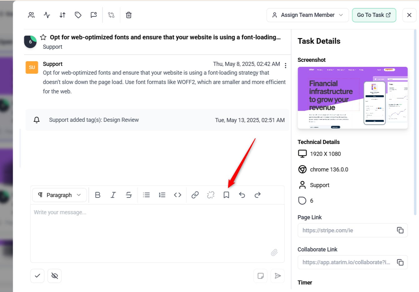 - Provides visual context for the task, ensuring clarity in reported issues or feedback.