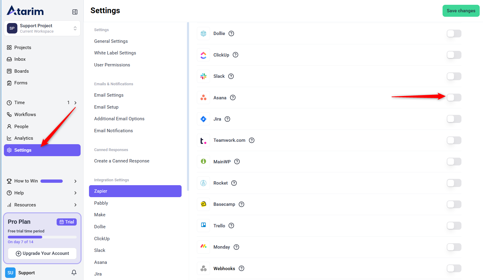 Start by enabling the Asana integration in Atarim and authenticating your account.