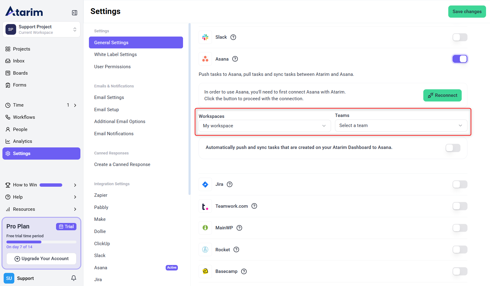Tip: If you see a Reconnect button in the Asana integration settings, it means your Asana account is successfully connected.