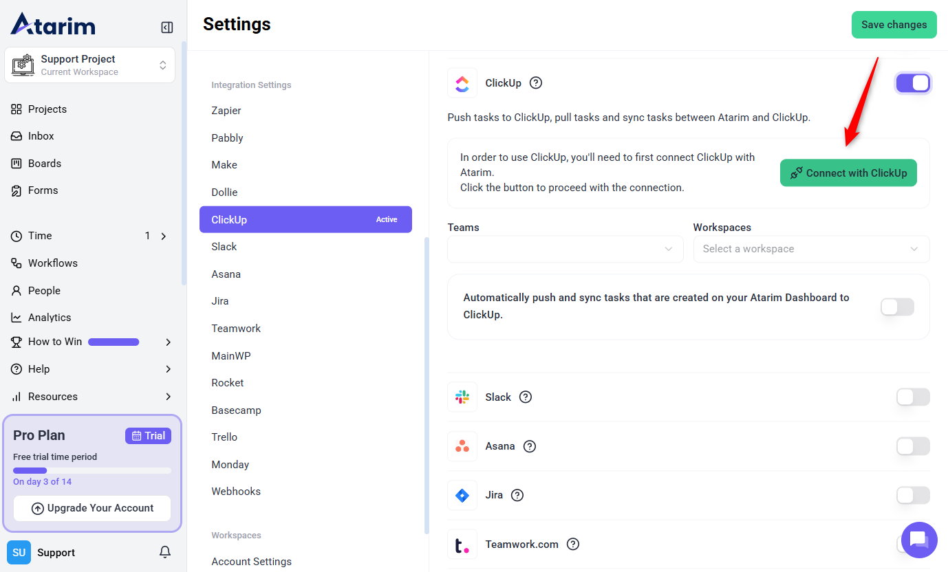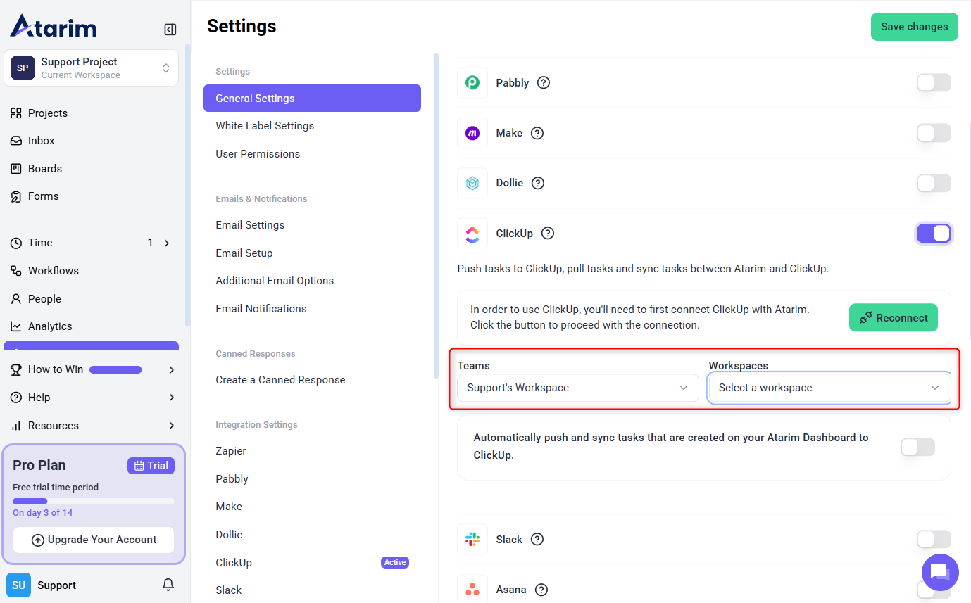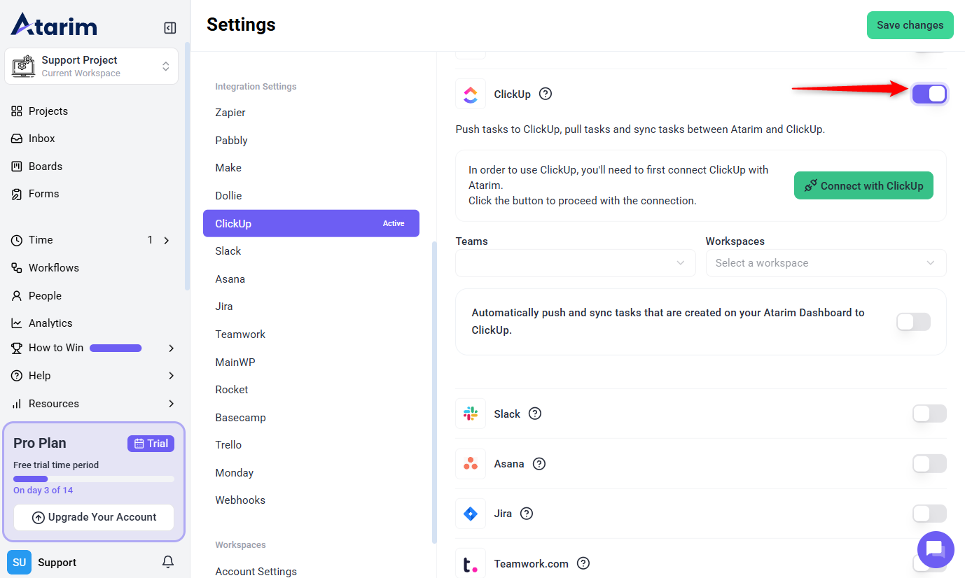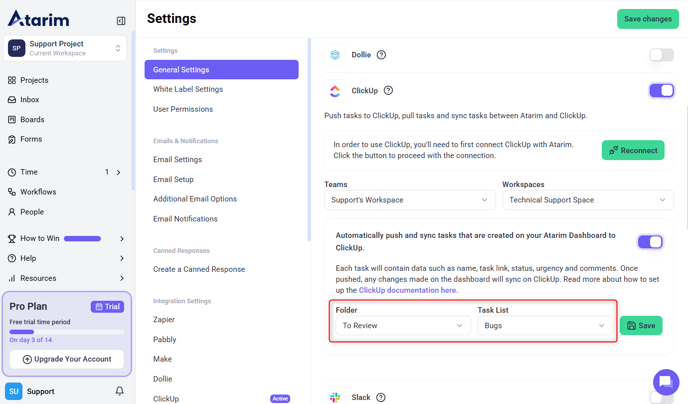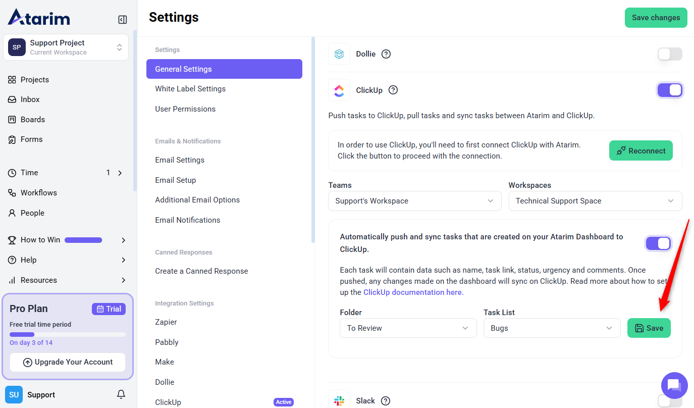 9. Enable Automatic task sync to push Atarim tasks to ClickUp.