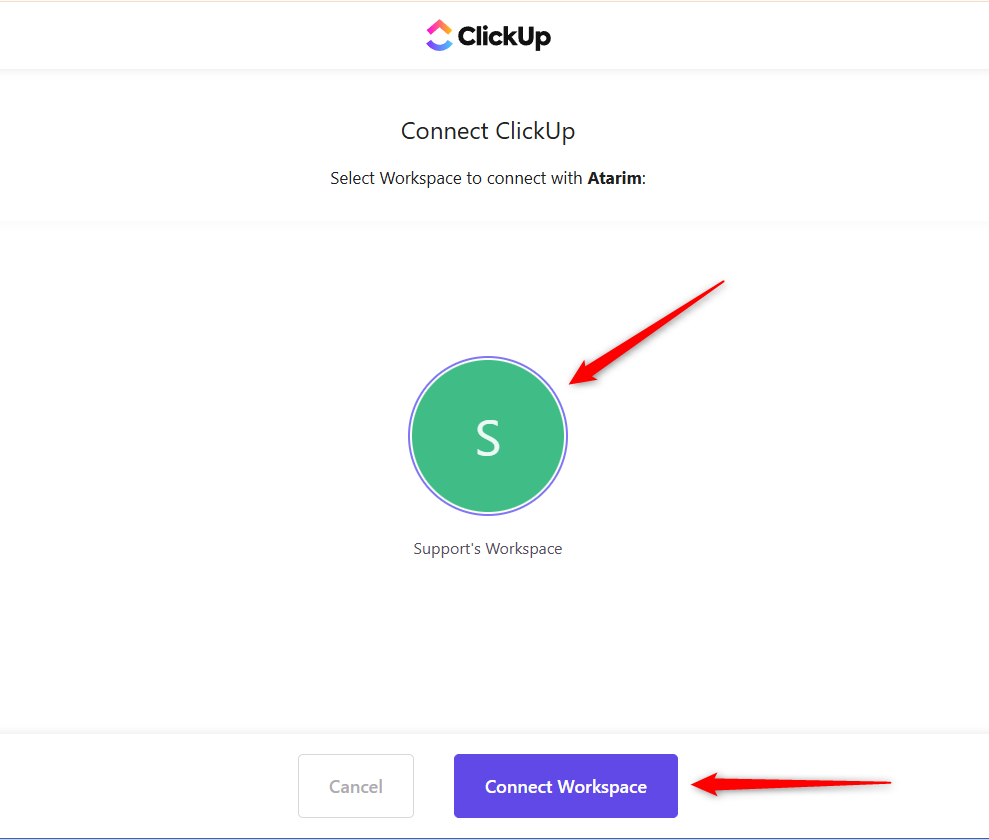 Tip: Make sure you’re logged into the correct ClickUp workspace before starting the connection flow—especially if you manage multiple accounts.