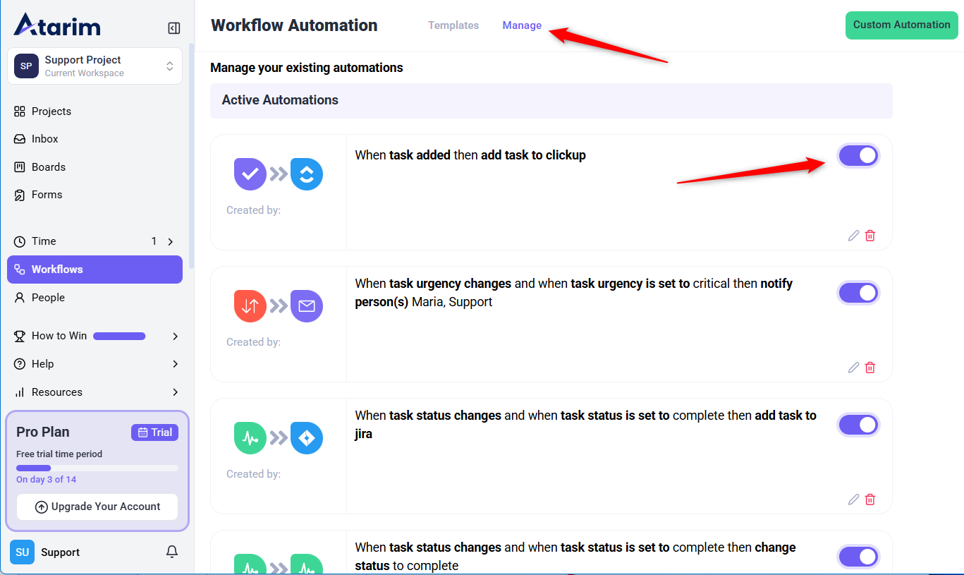 Tip: Use project-specific triggers for more precise control. This is especially useful if you manage workflows differently per client or department.