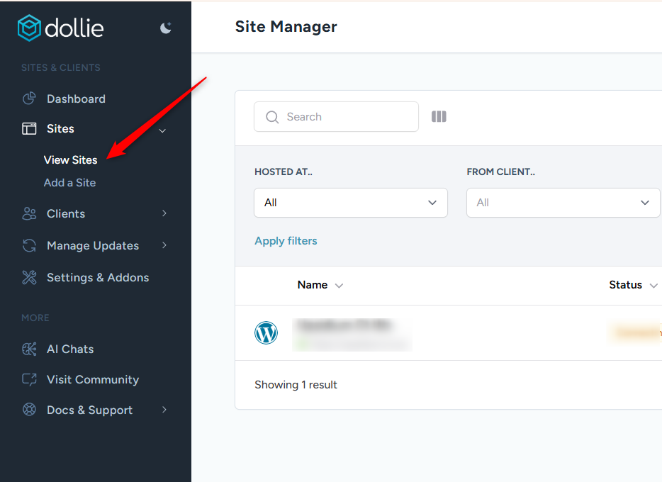 Once the test is successful, you’ll see the Atarim integration in action from within your Dollie Sites dashboard.