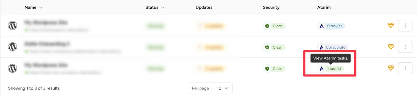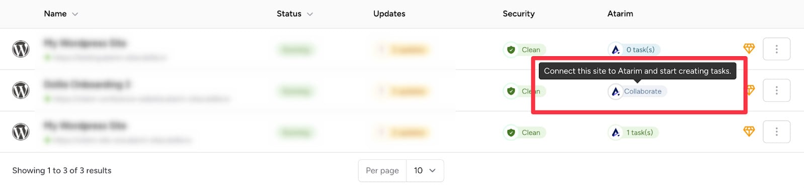 It allows you to start collaborating on websites from Dollie and view Atarim tasks directly in Dollie.