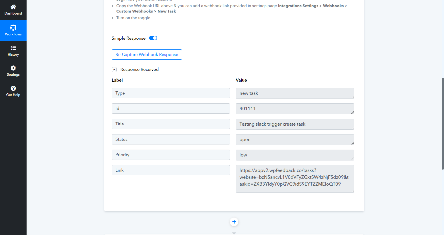 - Create a test task in Atarim to trigger the webhook.