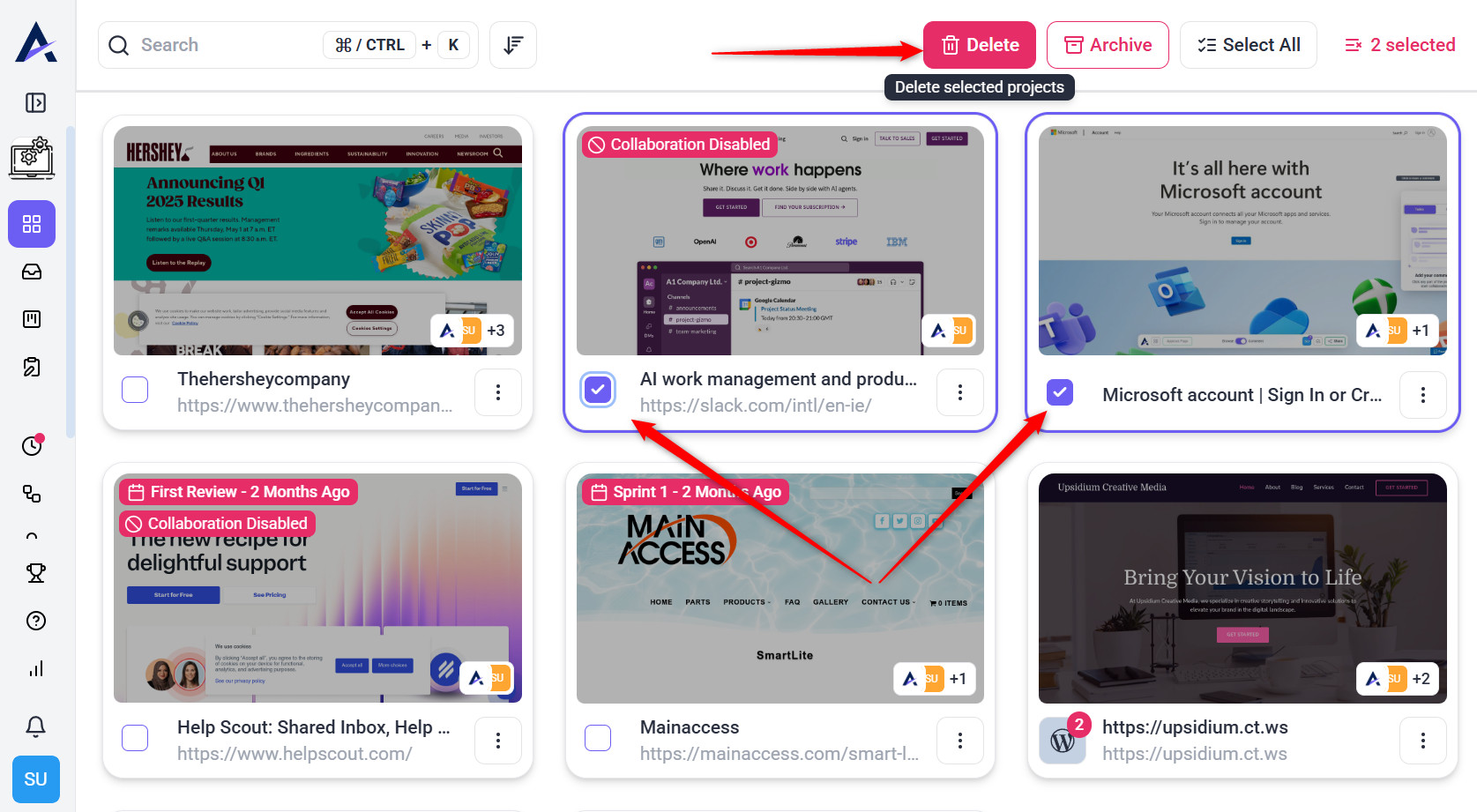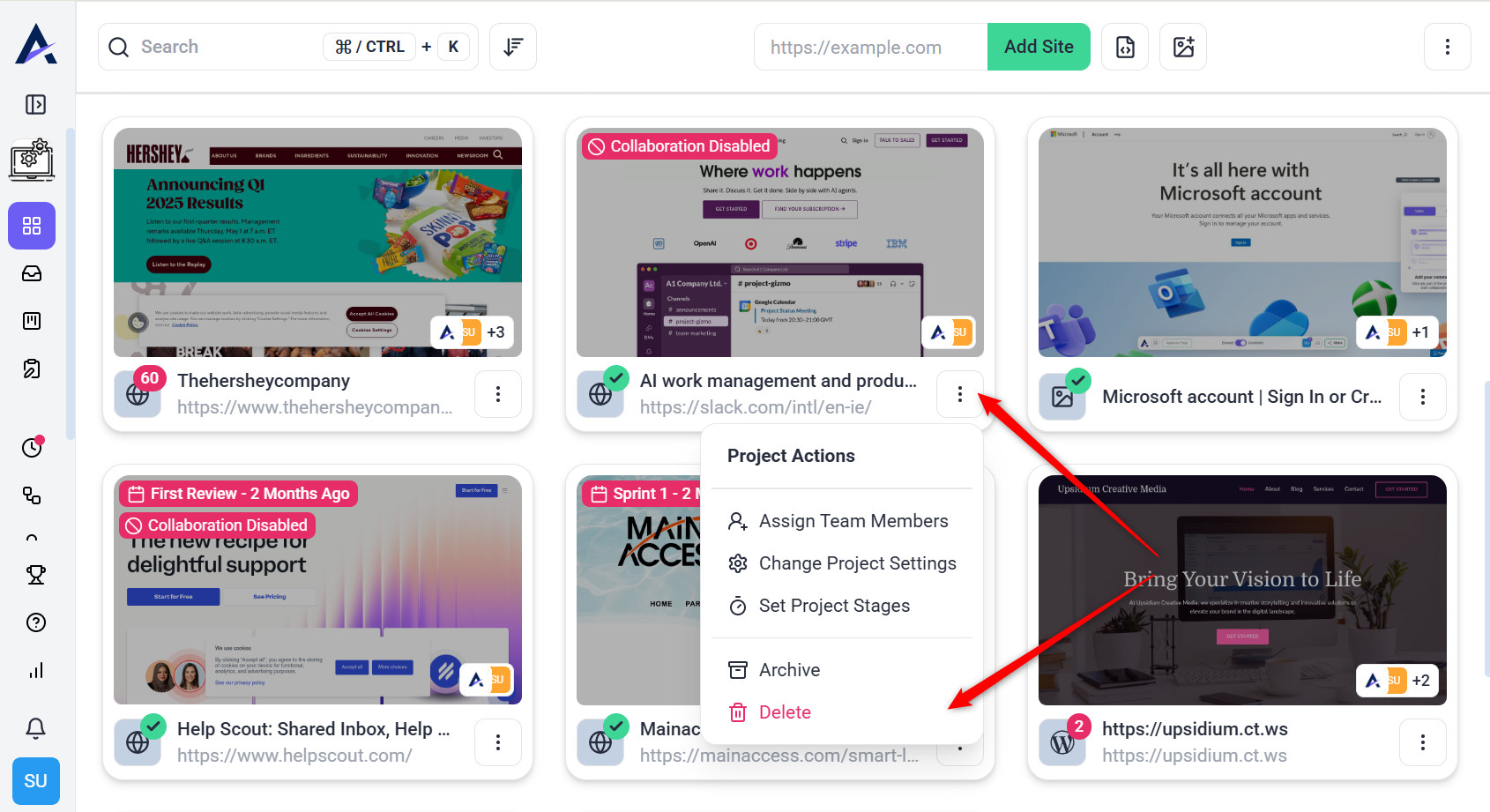 Effortlessly manage completed or inactive projects with Atarim’s delete and archive options.