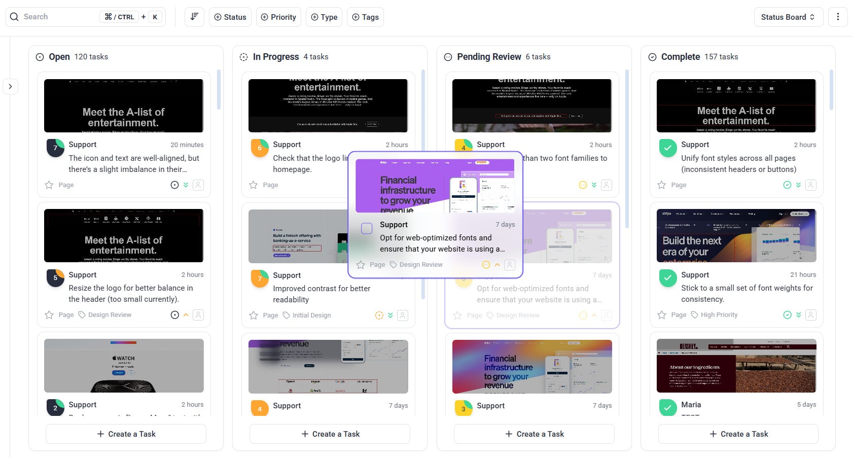 - Or on the board page, drag and drop to the relevant column.