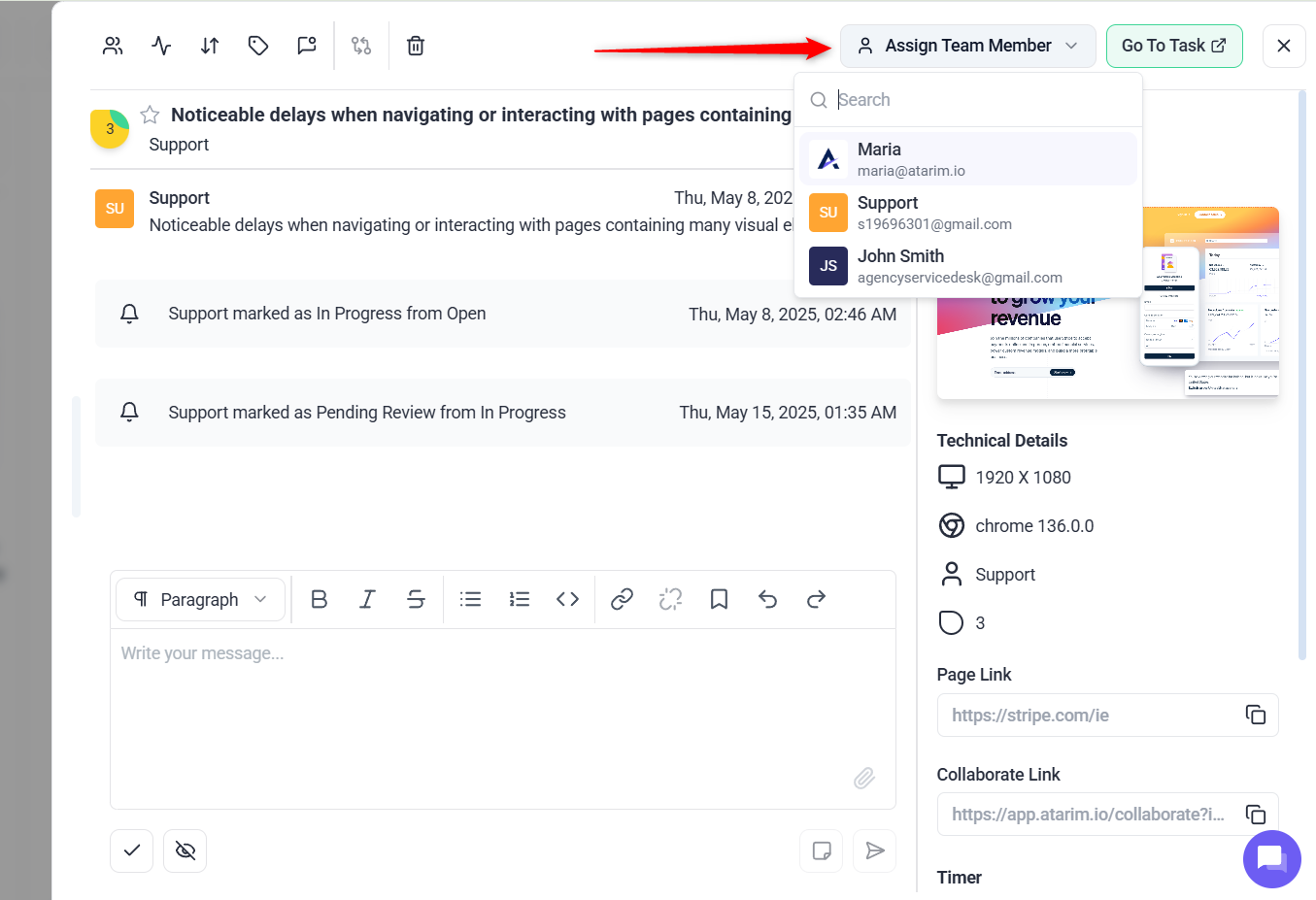 Clear task assignments are key to ensuring accountability and reducing confusion in large teams. Atarim allows you to assign specific tasks to team members and send automatic notifications to keep everyone informed.