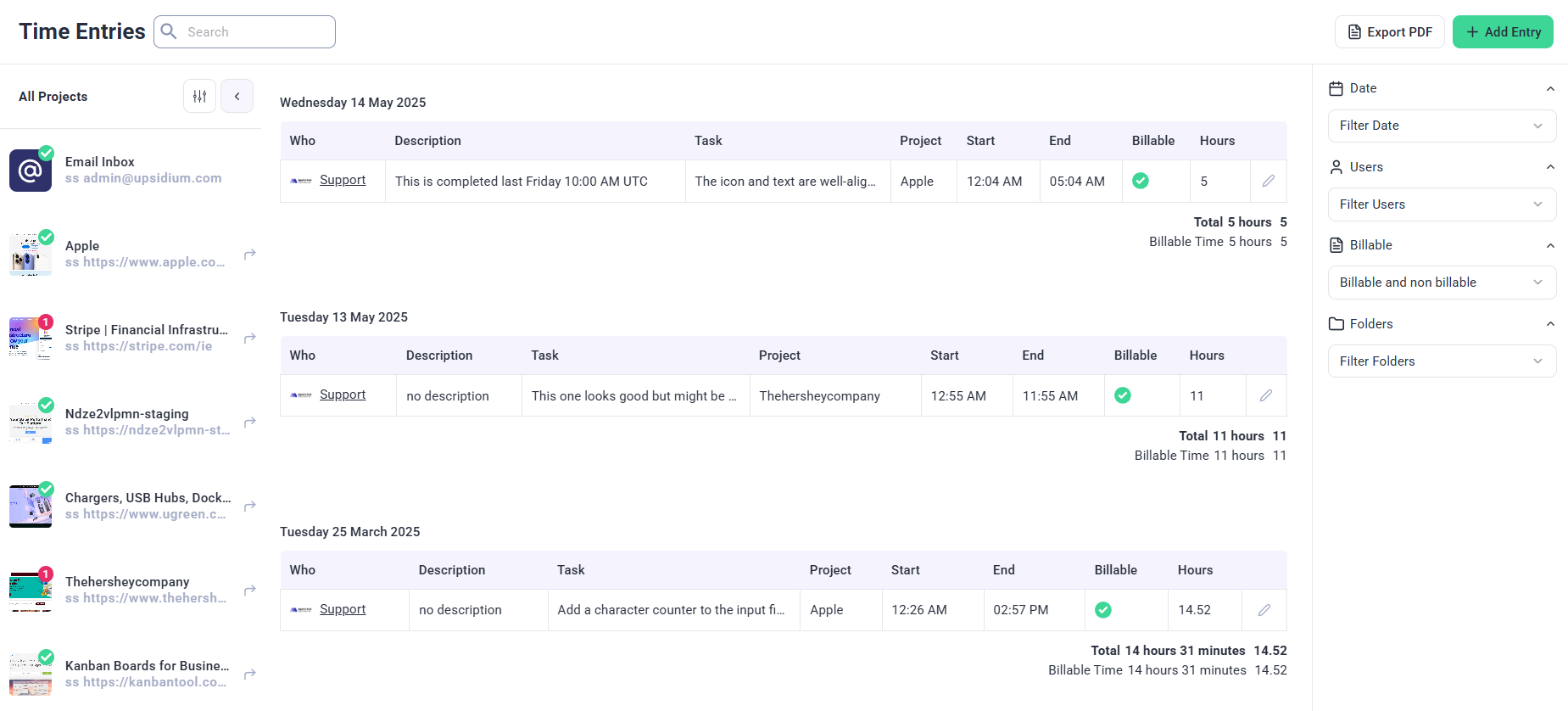 - Review time entries in the Reports section to analyze productivity.