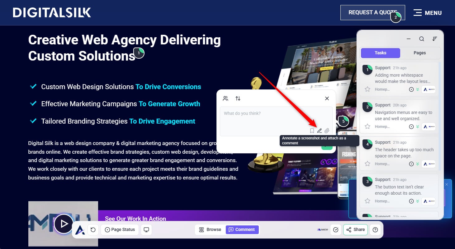 Once your screenshot is marked up, save it as a task comment for your team to see and act on.